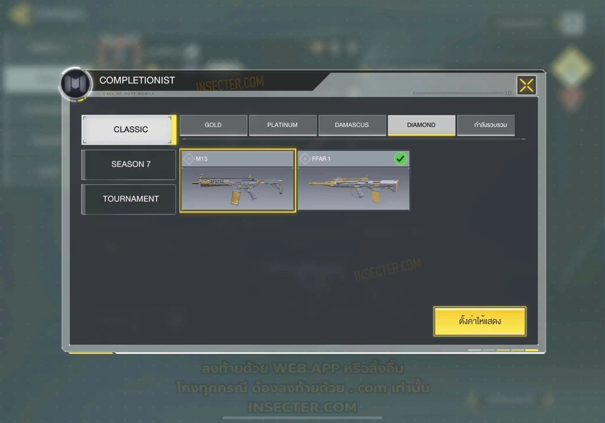 ข้อมูลย่อ : 🔴 𝙈𝙮𝙩𝙝𝙞𝙘 𝟲 - 𝗙𝗙𝗔𝗥 𝟭 - 𝗕𝗿𝗶𝗴𝗵𝘁 𝗕𝗹𝗮𝗱𝗲 𝗟𝘃.𝟰 𝗠𝟭𝟯 - 𝗠𝗼𝗿𝗻𝗶𝗻𝗴𝘀𝘁𝗮𝗿 𝗟𝘃.𝟰 𝗔𝗞𝟭𝟭𝟳 - 𝗠𝗲𝗺𝗲𝗻𝘁𝗼 𝗠𝗼𝗿𝗶 𝗟𝘃.𝟯 𝗞𝗿𝗶𝗴 𝟲 - 𝗜𝗰𝗲 𝗗𝗿𝗮𝗸𝗲 𝗟𝘃.𝟯 𝗛𝗼𝗹𝗴𝗲𝗿𝟮𝟲 - 𝗗𝗮𝗿𝗸 𝗙𝗿𝗼𝗻𝘁𝗶𝗲𝗿 𝗟𝘃.𝟯 𝗘𝗠𝟮 - 𝗘𝗰𝗹𝗶𝗽𝘀𝗲 𝗣𝗵𝗮𝘀𝗲𝗿 𝗟𝘃.𝟮 🟡 𝙇𝙚𝙜𝙚𝙣𝙙𝙖𝙧𝙮 𝟭𝟲 - 𝗧𝘆𝗽𝗲 𝟮𝟱 - 𝗛𝗲𝗹𝗹’𝘀 𝗛𝗼𝗿𝘀𝗲 , 𝗠𝗫𝟵 - 𝗛𝗲𝗮𝗿𝘁𝗹𝗲𝘀𝘀 , 𝗧𝗮𝗻𝗴 𝗞𝗻𝗶𝗳𝗲 - 𝗕𝗔𝗜𝗬𝗨𝗘𝗞𝗨𝗜 , 𝗔𝗿𝘁𝘁𝗶𝗰 .𝟱𝟬 - 𝗙𝗼𝘅𝗳𝗶𝗿𝗲 𝗣𝗿𝗲𝘀𝘁𝗶𝗴𝗲 , 𝗣𝗣𝟭𝟵 𝗕𝗶𝘇𝗼𝗻 - 𝗢𝗮𝘁𝗵’𝘀 𝗗𝗲𝗳𝗶𝗮𝗻𝗰𝗲 , 𝗝𝟯𝟱𝟴 - 𝗛𝗲𝗮𝘃𝘆 𝗛𝗮𝗻𝗱𝗲𝗱 , 𝗟𝗞𝟮𝟰 - 𝗗𝗿𝗼𝗽 𝗦𝗵𝗼𝗰𝗸 , 𝗟𝗼𝗰𝘂𝘀 - 𝗗𝗲𝗺𝗼𝗻𝗶𝗰 𝗕𝗿𝗲𝗮𝘁𝗵 , 𝗭𝗥𝗚 𝟮𝟬𝗺𝗺 - 𝗧𝗶𝗰𝗸𝗲𝘁 𝘁𝗼 𝗛𝗲𝗹𝗹 , 𝗜𝗖𝗥-𝟭 - 𝗪𝗶𝘀𝘁𝗲𝗿𝗶𝗮𝗻 𝗩𝗶𝘀𝗮𝗴𝗲 , 𝗠𝟰 - 𝗩𝗼𝗹𝗱 𝗜𝗺𝗽𝗹𝗼𝘀𝗶𝗼𝗻 , 𝗦𝘄𝗼𝗿𝗱𝗳𝗶𝘀𝗵 - 𝗖𝗮𝗹𝗮𝗰𝗲 𝗣𝗿𝗲𝘀𝘁𝗶𝗴𝗲 , 𝗞𝗥𝗠-𝟮𝟲 - 𝗚𝗹𝗼𝗿𝗶𝗼𝘂𝘀 𝗕𝗹𝗮𝘇𝗲 , 𝗛𝗕𝗥𝗮𝟯 - 𝗥𝗶𝗰𝘁𝘂𝘀 𝗔𝗿𝗰 , 𝗤𝗤𝟵 - 𝗠𝗼𝗼𝗻𝗹𝗶𝗴𝗵𝘁 , 𝗦𝘁𝗿𝗶𝗸𝗲𝗿 𝟰𝟱 - 𝗦𝗵𝗮𝗿𝗽 𝗙𝗶𝗻𝘀 🔴 𝗠𝘆𝘁𝗵𝗶𝗰 ( 𝗦𝗼𝗹𝗱𝗶𝗲𝗿𝘀 ) - 𝗧𝗲𝗺𝗽𝗹𝗮𝗿 - 𝗖𝗼𝘂𝘁𝗲𝗮𝘂’𝘀 𝗢𝗮𝘁𝗵 𝗟𝘃.𝟳 🟣 - ตัวละคร 𝟴𝟳 🎮 🟣 - สกินปืu 𝟭𝟴𝟵 🎮