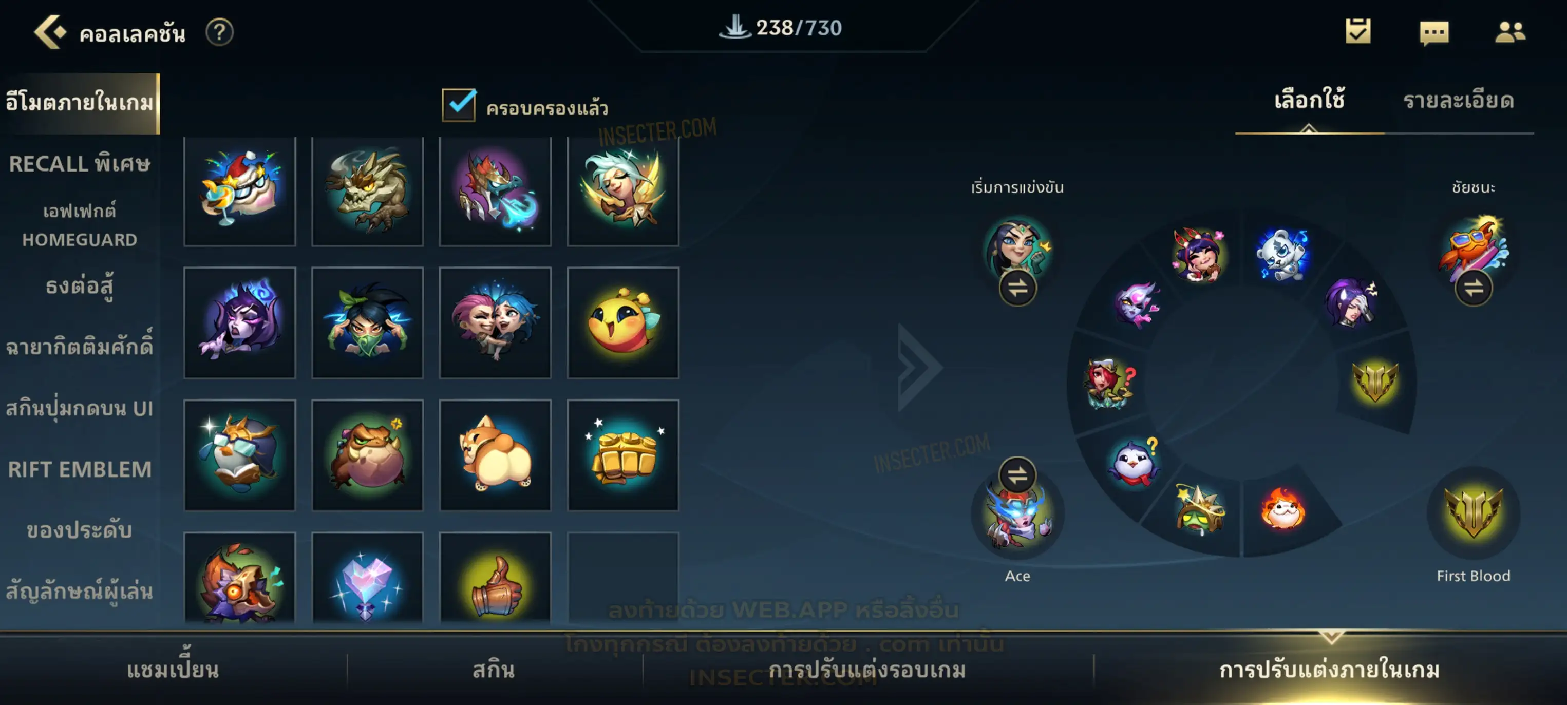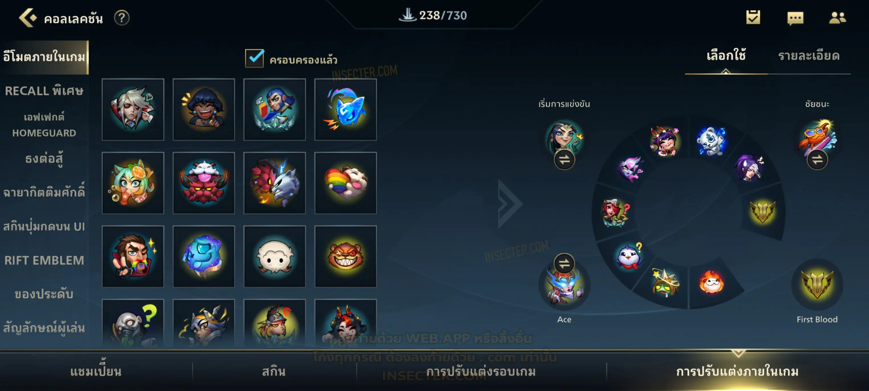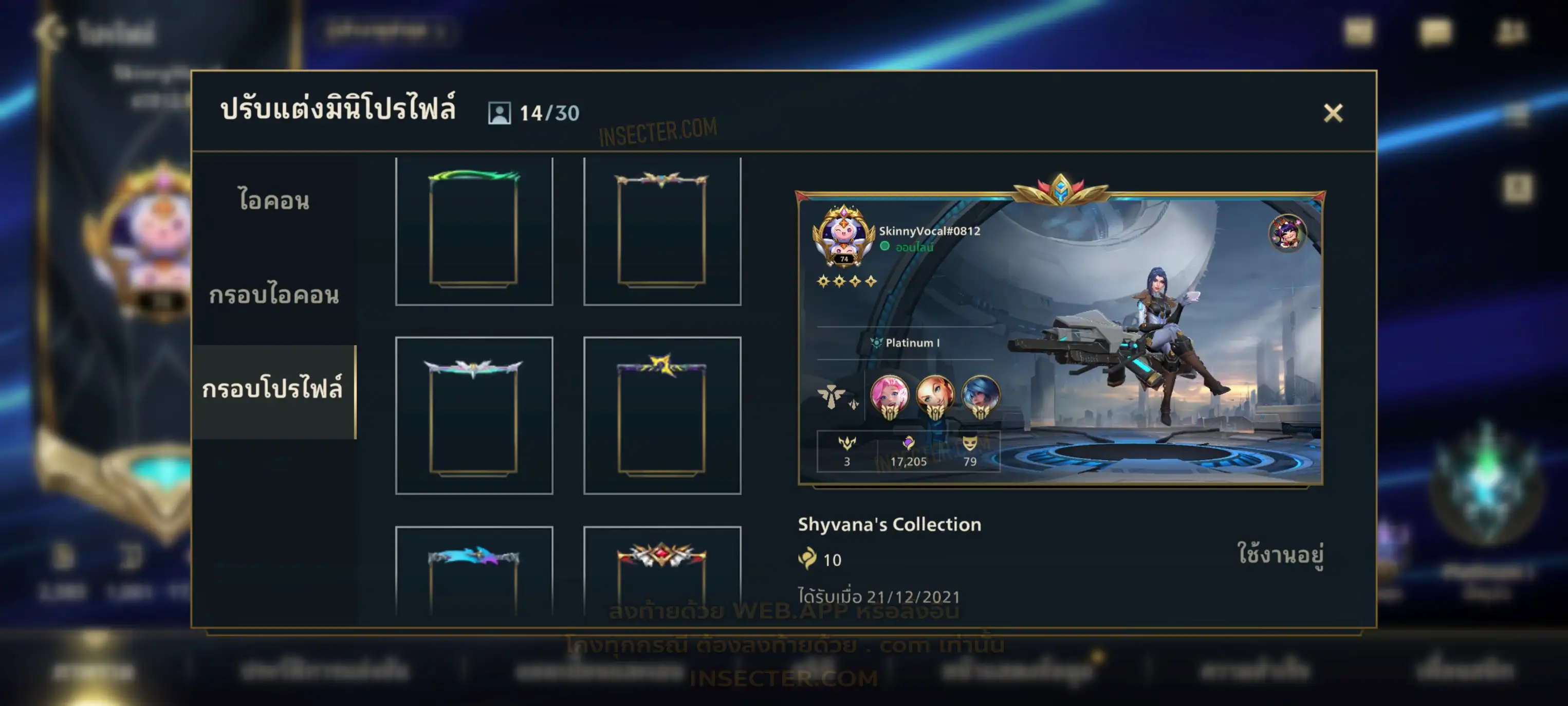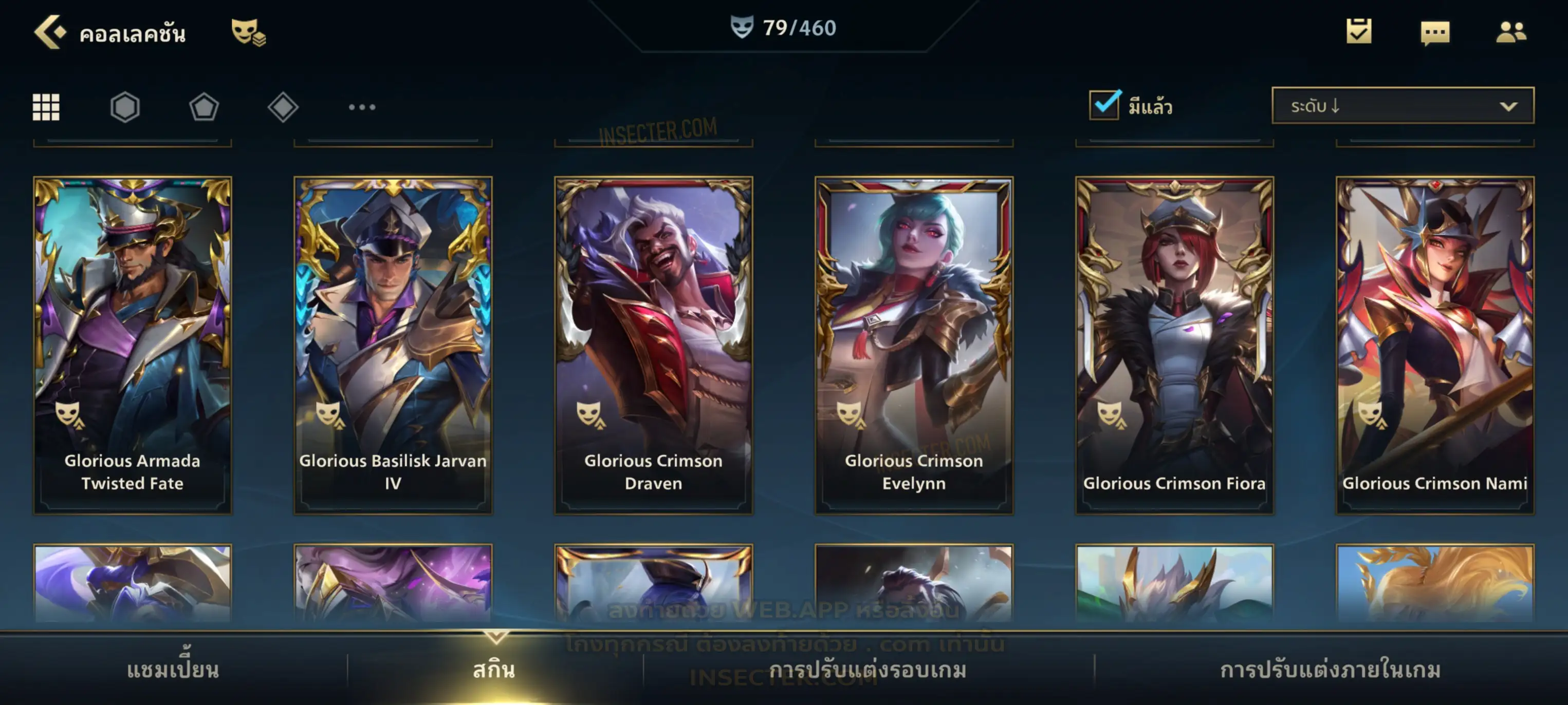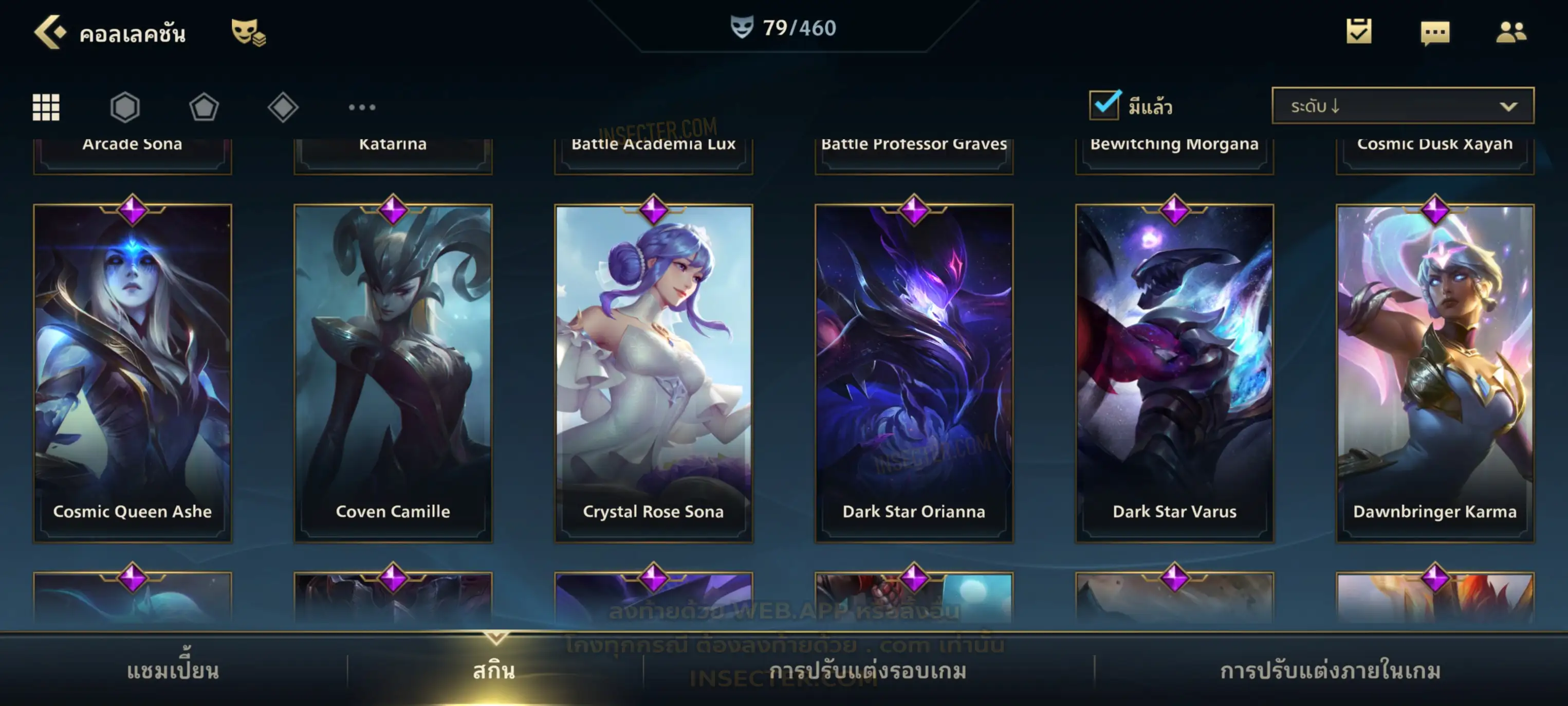 ข้อมูลย่อ : เมน MID-SUP-AD แชมเยอะ เน้นสกินผู้หญิงสวย ๆ คุ้ม ๆ เลยจ้า 96/105 >แชมเปี้ยน 79 >สกิน 7 >Legendary (กรอบลิมิเต็ด 2 กรอบ+ท่าโพสพิเศษ 2 ท่า '' เป็นแบบกดในเกมได้ 1ท่า '') 45 >Epic (กรอบลิมิเต็ด 6 กรอบ+ท่าโพสพิเศษ 3 ท่า) 27 >อื่นๆ (กรอบลิมิเต็ด 7 กรอบ+ท่าโพสพิเศษ 2 ท่า)