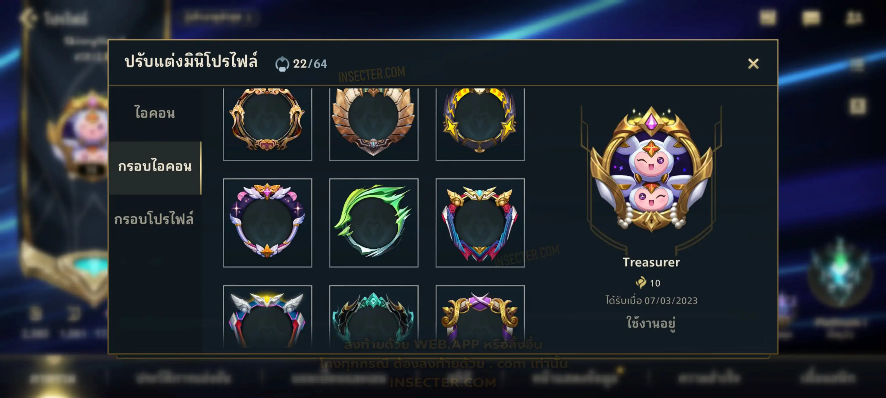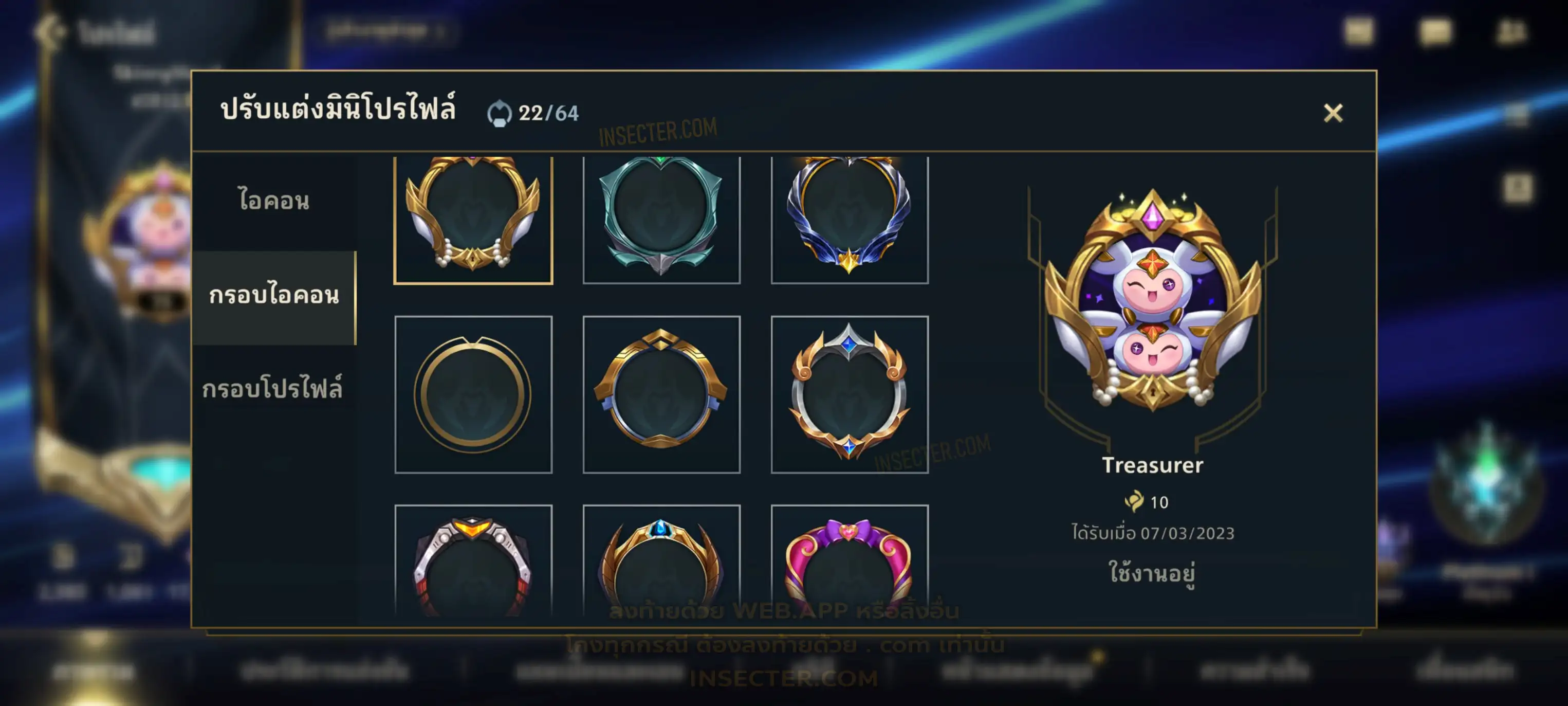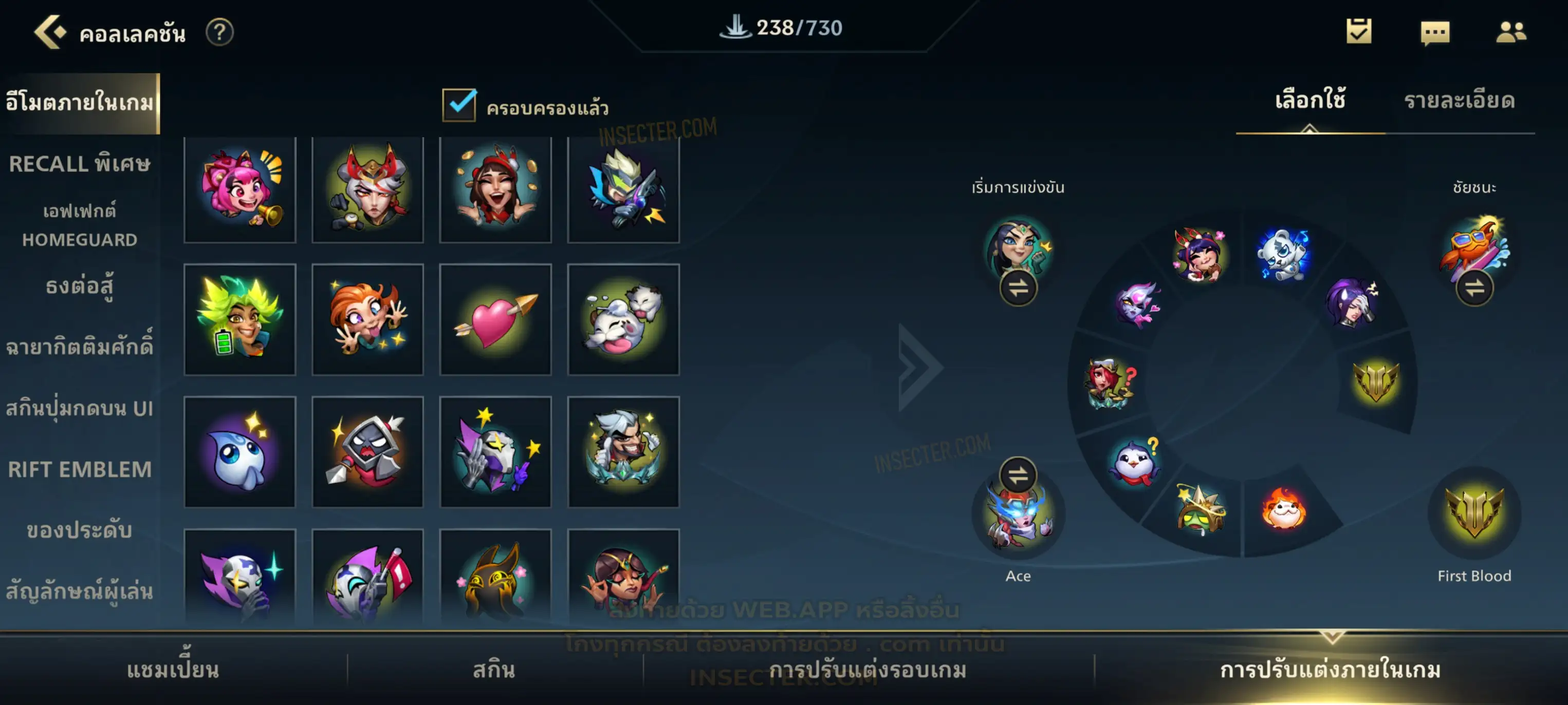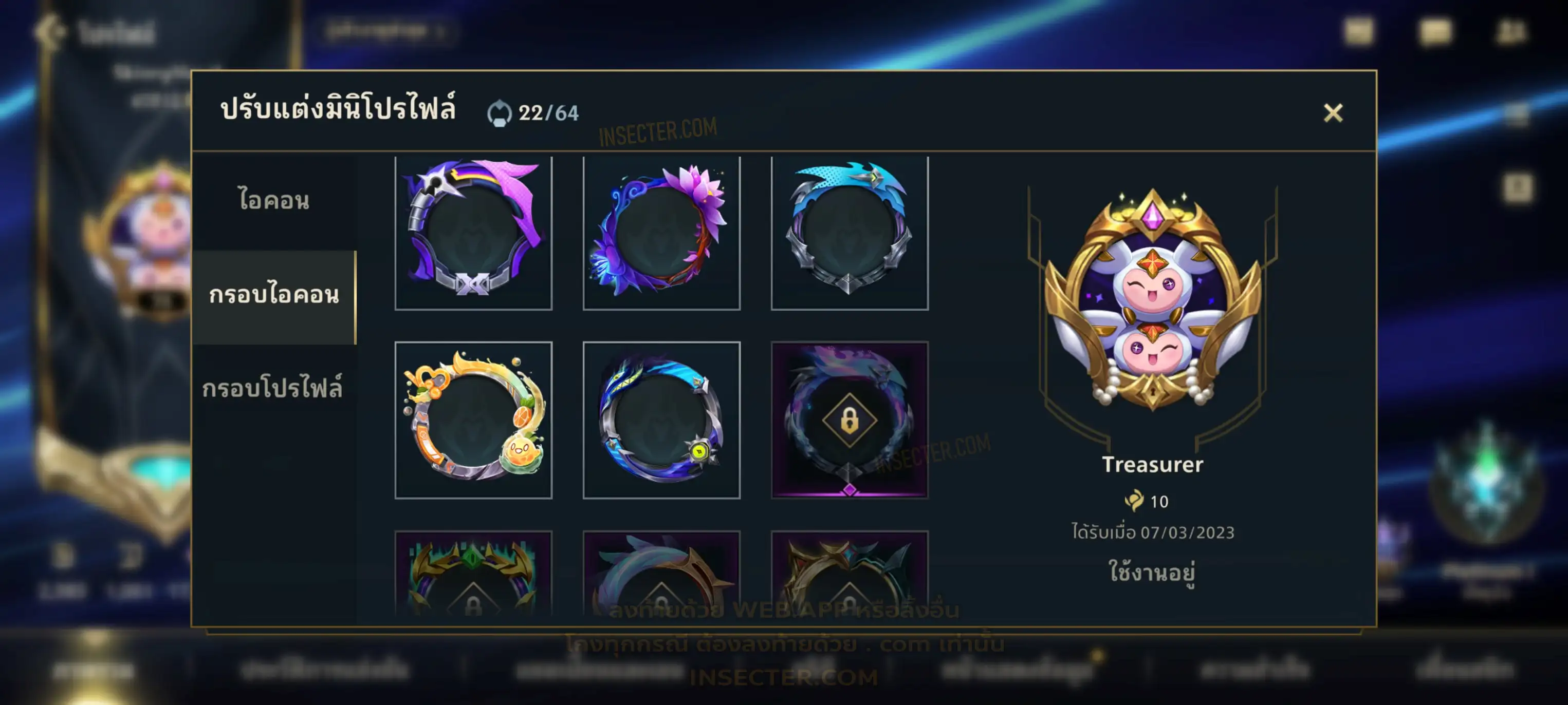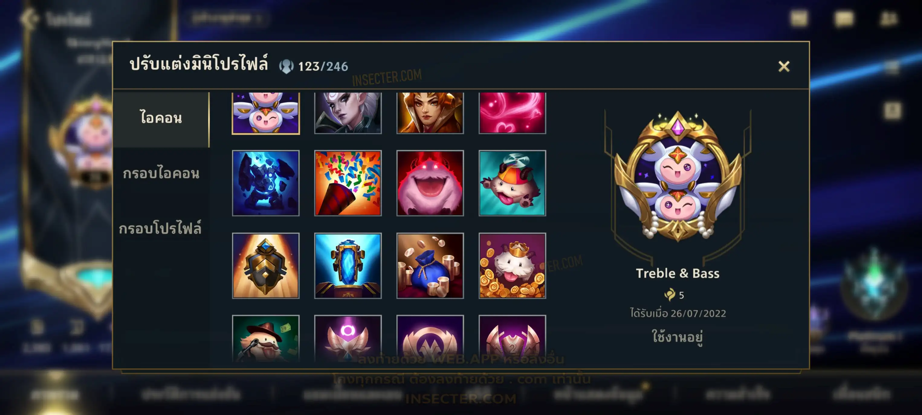 ข้อมูลย่อ : เมน MID-SUP-AD แชมเยอะ เน้นสกินผู้หญิงสวย ๆ คุ้ม ๆ เลยจ้า 96/105 >แชมเปี้ยน 79 >สกิน 7 >Legendary (กรอบลิมิเต็ด 2 กรอบ+ท่าโพสพิเศษ 2 ท่า '' เป็นแบบกดในเกมได้ 1ท่า '') 45 >Epic (กรอบลิมิเต็ด 6 กรอบ+ท่าโพสพิเศษ 3 ท่า) 27 >อื่นๆ (กรอบลิมิเต็ด 7 กรอบ+ท่าโพสพิเศษ 2 ท่า)