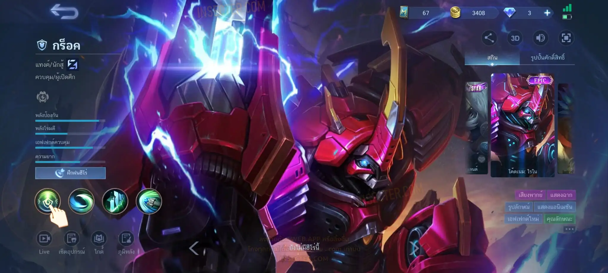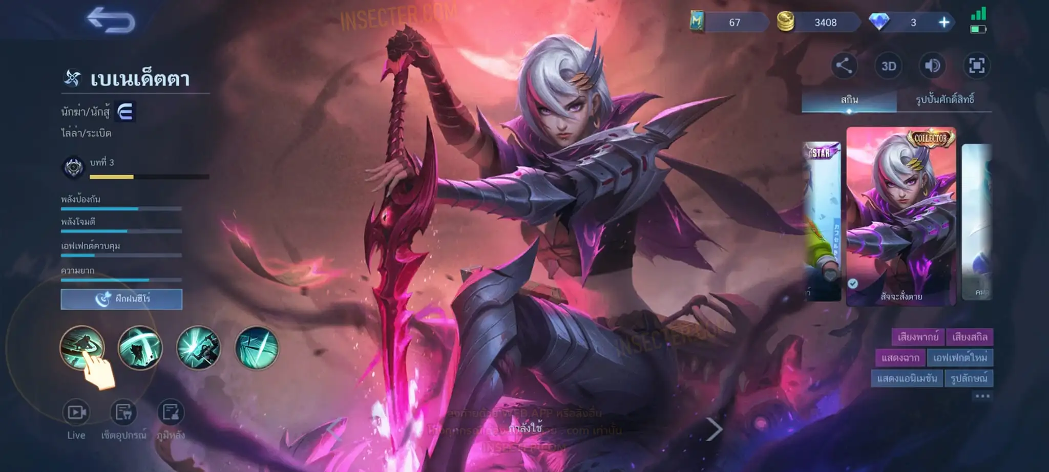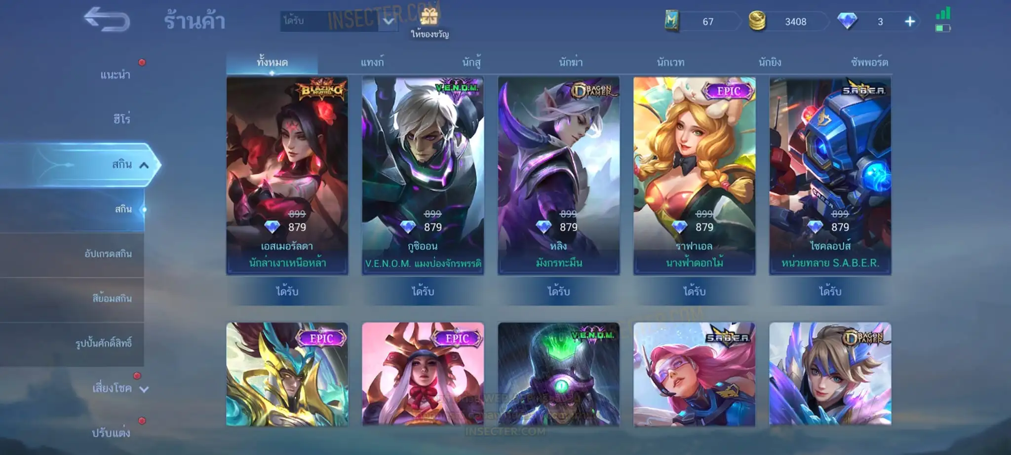 ข้อมูลย่อ : Hero 39 Skin 108 เอ็มเบลสายเวทย์ตัน/วาร์ปปีกพิพากษา แสงดาว ปี 2022 แก่นพลังเวท 80 (ครบ 200 แลก Skin Legend 1 ตัว) 1.เบเนเด็ตตา Collector 2.รูบี้ อนิเมะ 3.แองเจลา อนิเมะ ถ่ายมาบางส่วนยังไม่รวม Skin Special/Elite/Season/Ster คอลเลคชั่นอื่นๆ