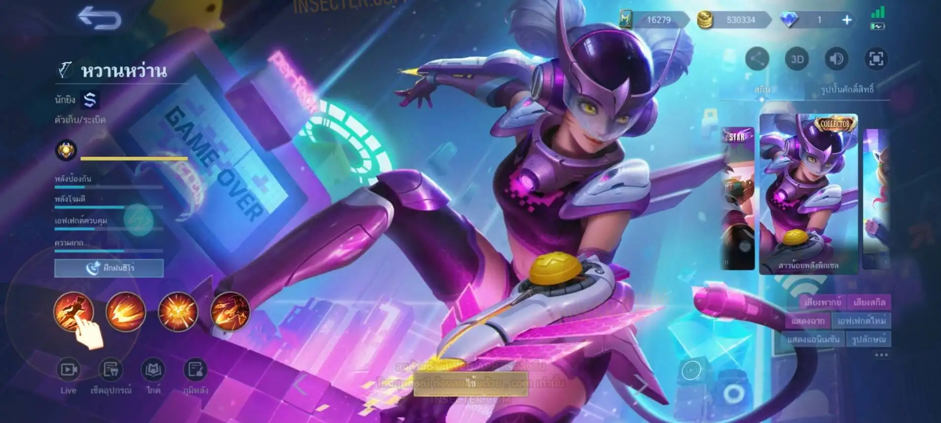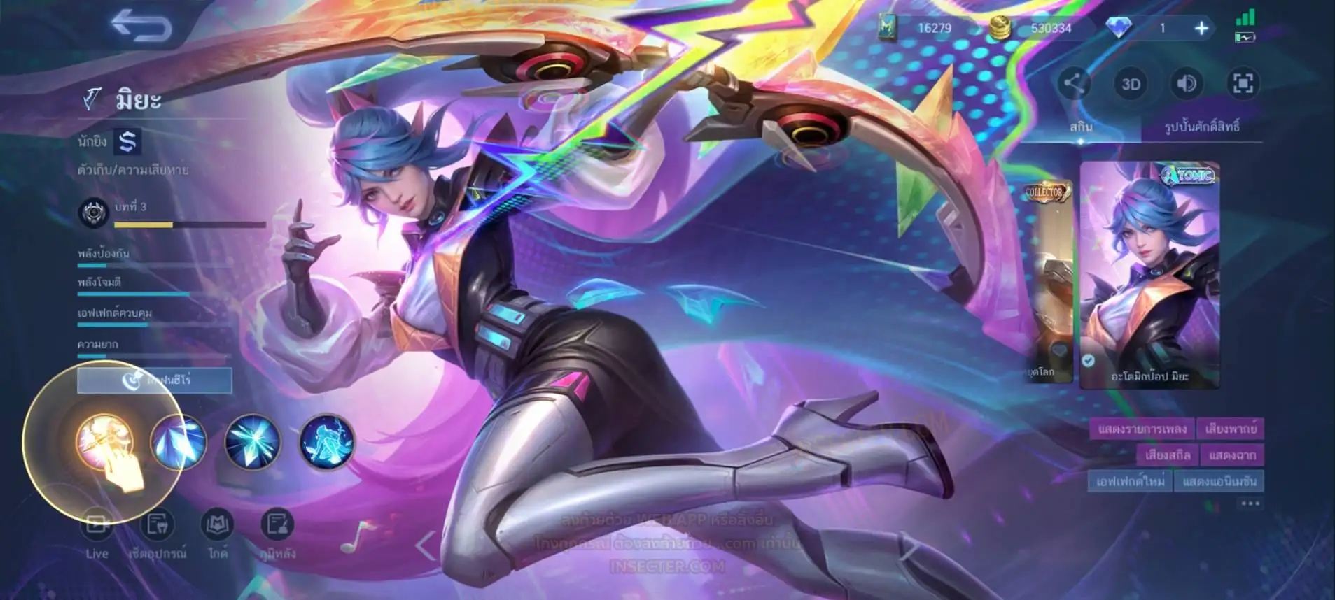 ข้อมูลย่อ : Hero 122 Skin 406 เอ็มเบลตัน/กรอบรูป Zodiac !!! วาร์ปแรร์ผนึกเวทย์สายฟ้า Epic ถาวร !!! วาร์ปแรร์ดอกผนึกนิรันดร์ Epic ถาวร !!! ตั๋ว 16,000 ทอง 530,000 แต้มราศี 61 (ครบ 100 แลก Skin Zodiac 1 ตัว) แก่นพลังเวท 114 (ครบ 200 แลก Skin Legend 1 ตัว) Legend 2 ตัว Collector 1 ตัว อนิเมะ 26 ตัว Zodiac 11/13 ตัว !!! M2/M3/M4/Prime 4 ตัว Epic แรร์/ธรรมดา 21 ตัว ถ่ายมาบางส่วนยังไม่รวม Special/Ster/MSC/Christmas/Valentine/Halloween/AS/515/Create/Season คอลเลคชั่นอื่นๆ