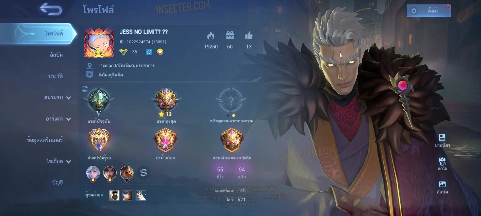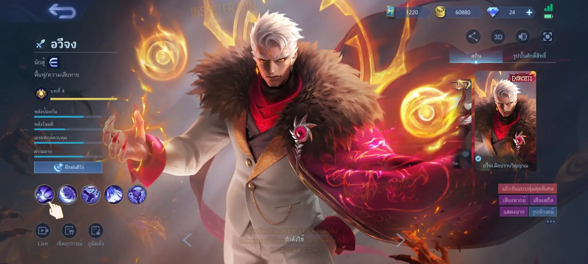 ข้อมูลย่อ : Hero 55 Skin 94 เอ็มเบล 90%/วาร์ปแรร์มือปราบ ถาวร ครบเซ็ต !!! 1.อวีจง Exorcists 2.มิยะ Atomic 3.จอห์น Epic แรร์ 4.บาดัง เซย์ยา 5.บรูโน่ เนย์มาร์ ถ่ายมาบางส่วนไม่รวม Skin Season/Ster คอลเลคชั่นอื่นๆ