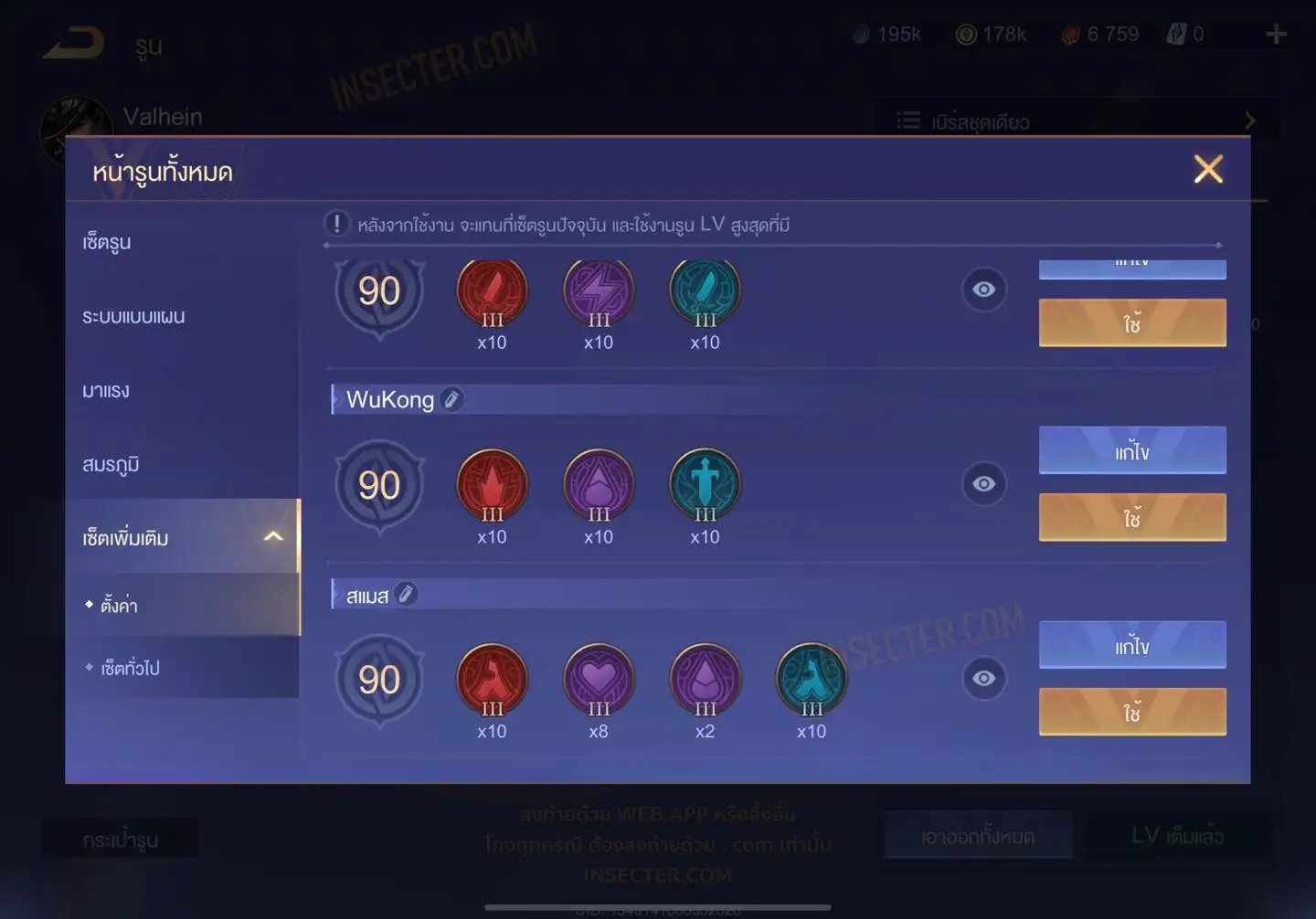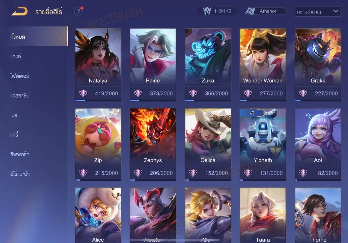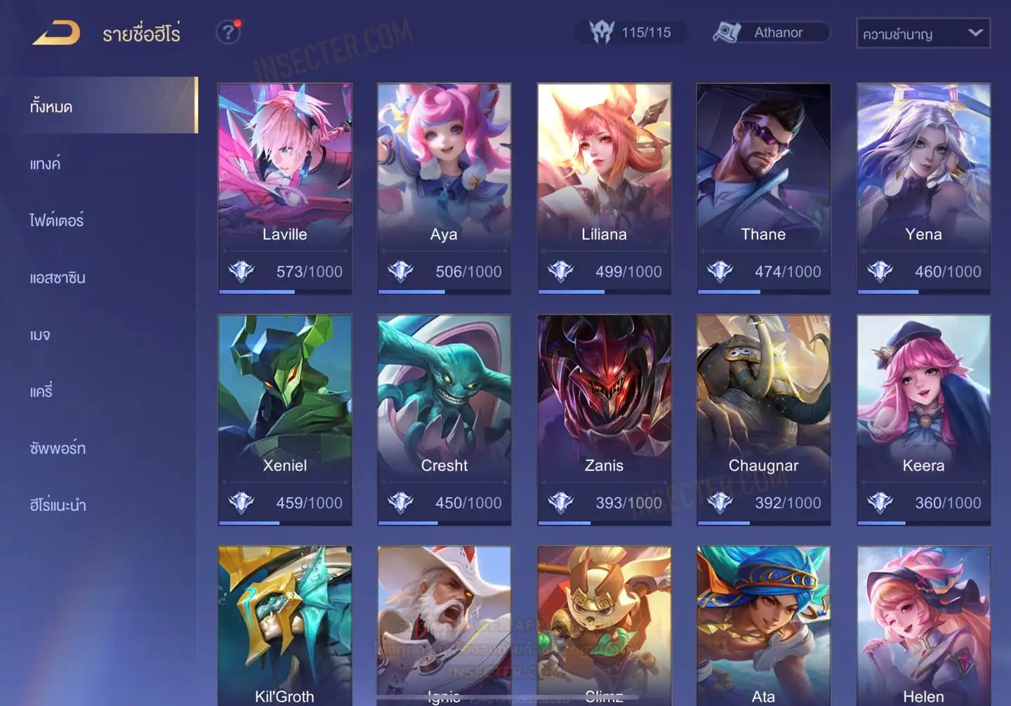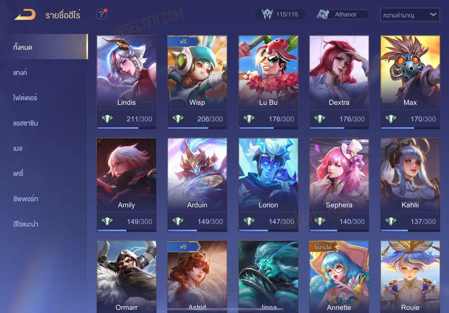 ข้อมูลย่อ : HERO 115 SKIN 395 สกินแรร์อนิเมะครบ รูน 30 หน้า