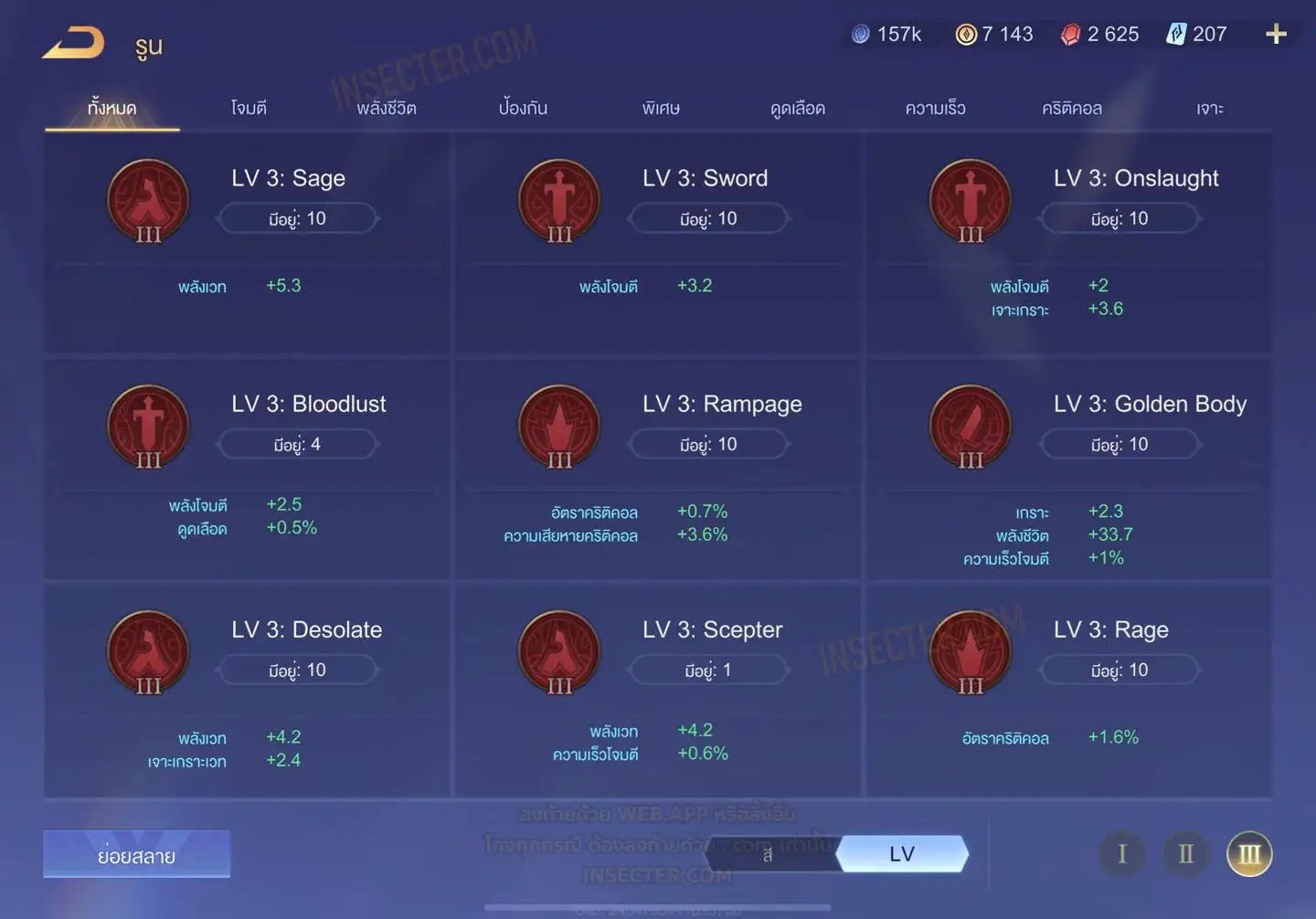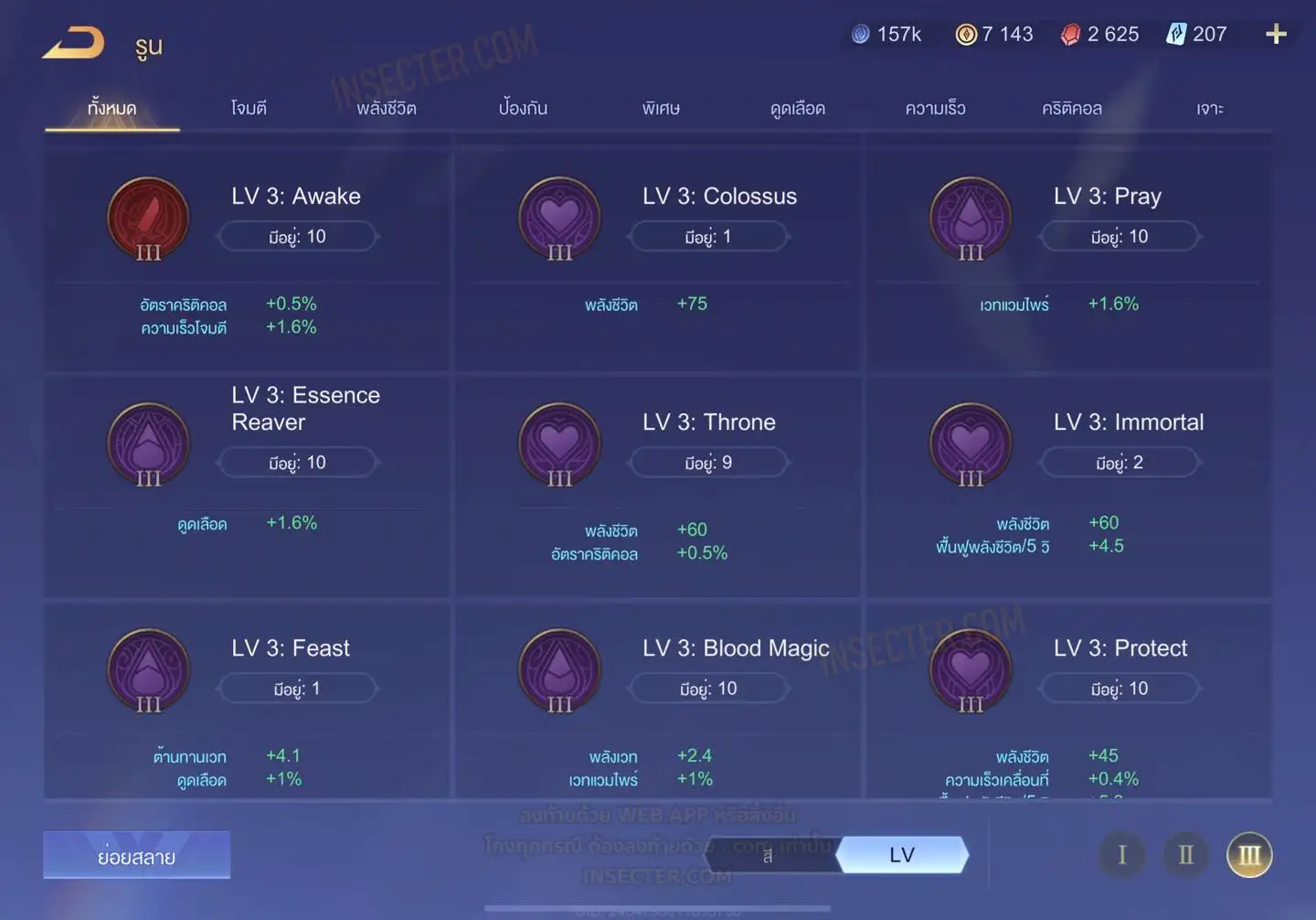 ข้อมูลย่อ : HERO 115 SKIN 263 สกินแรร์เพียบ รูน 30 หน้า
