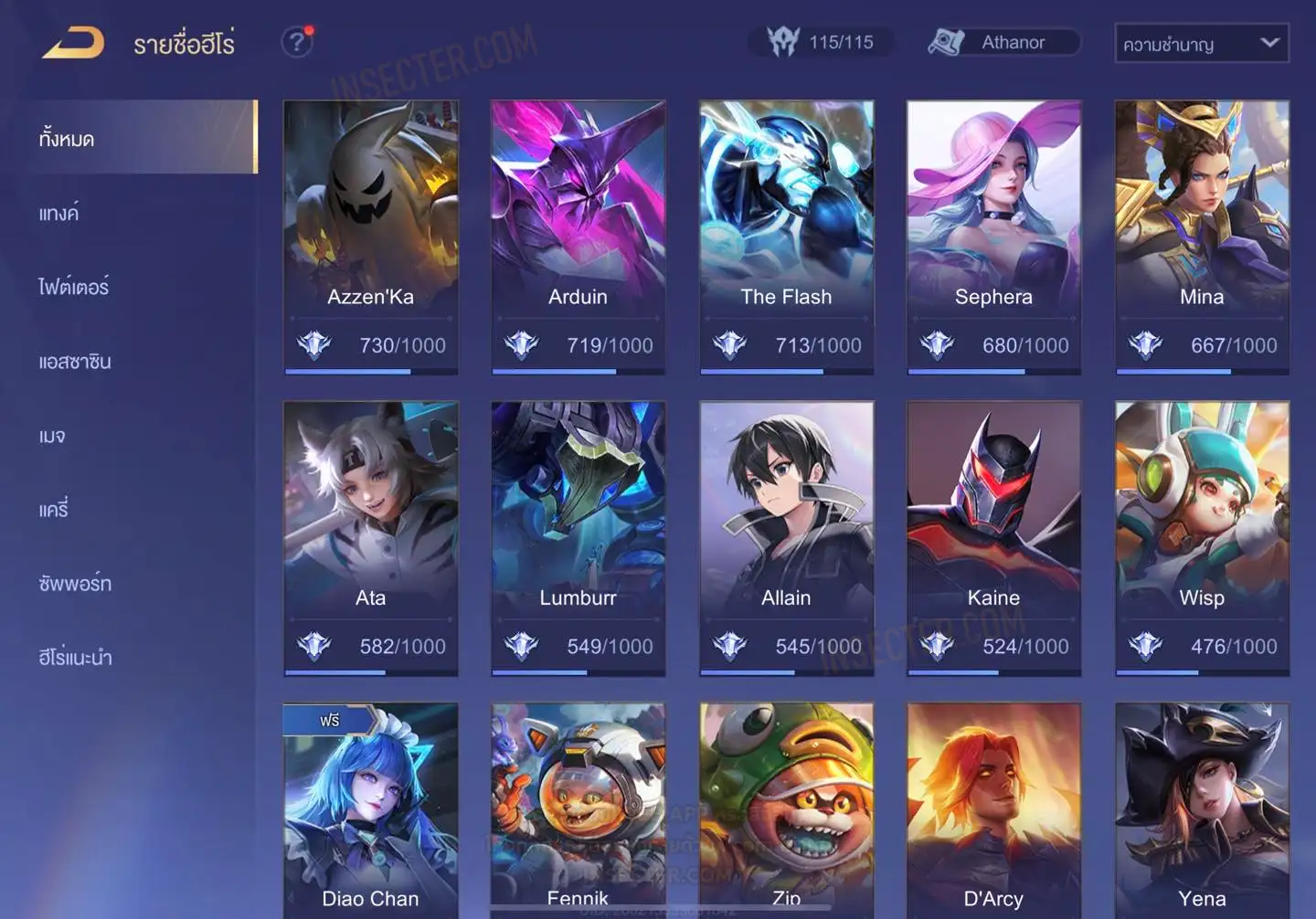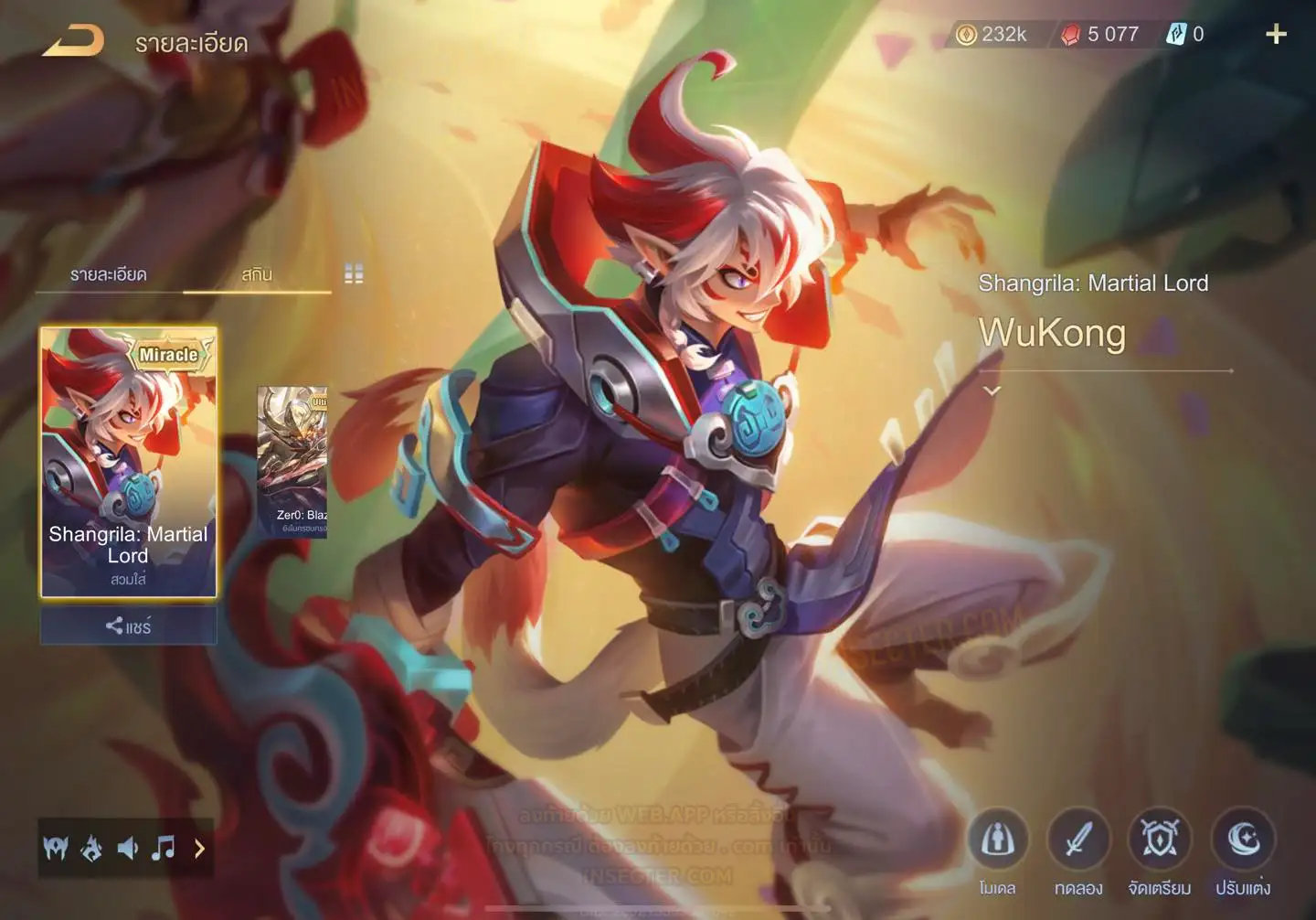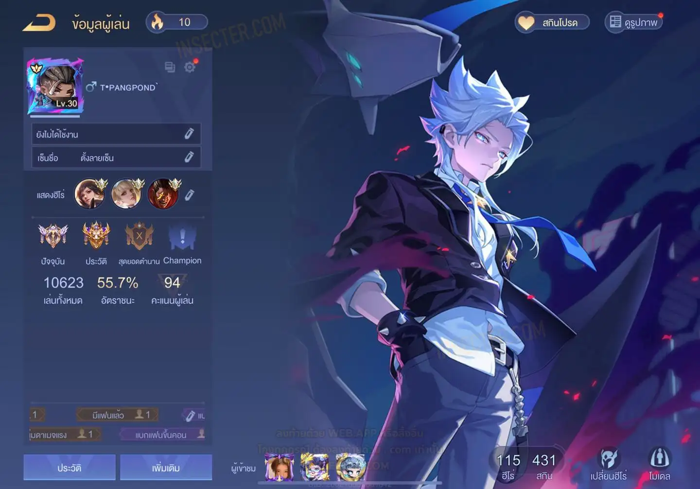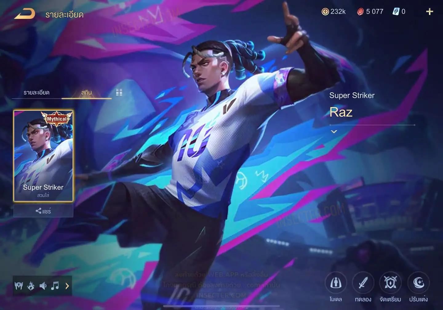 ข้อมูลย่อ : HERO 115 SKIN 431 สกินแรร์ RAZ Super Striker รูน 30 หน้า