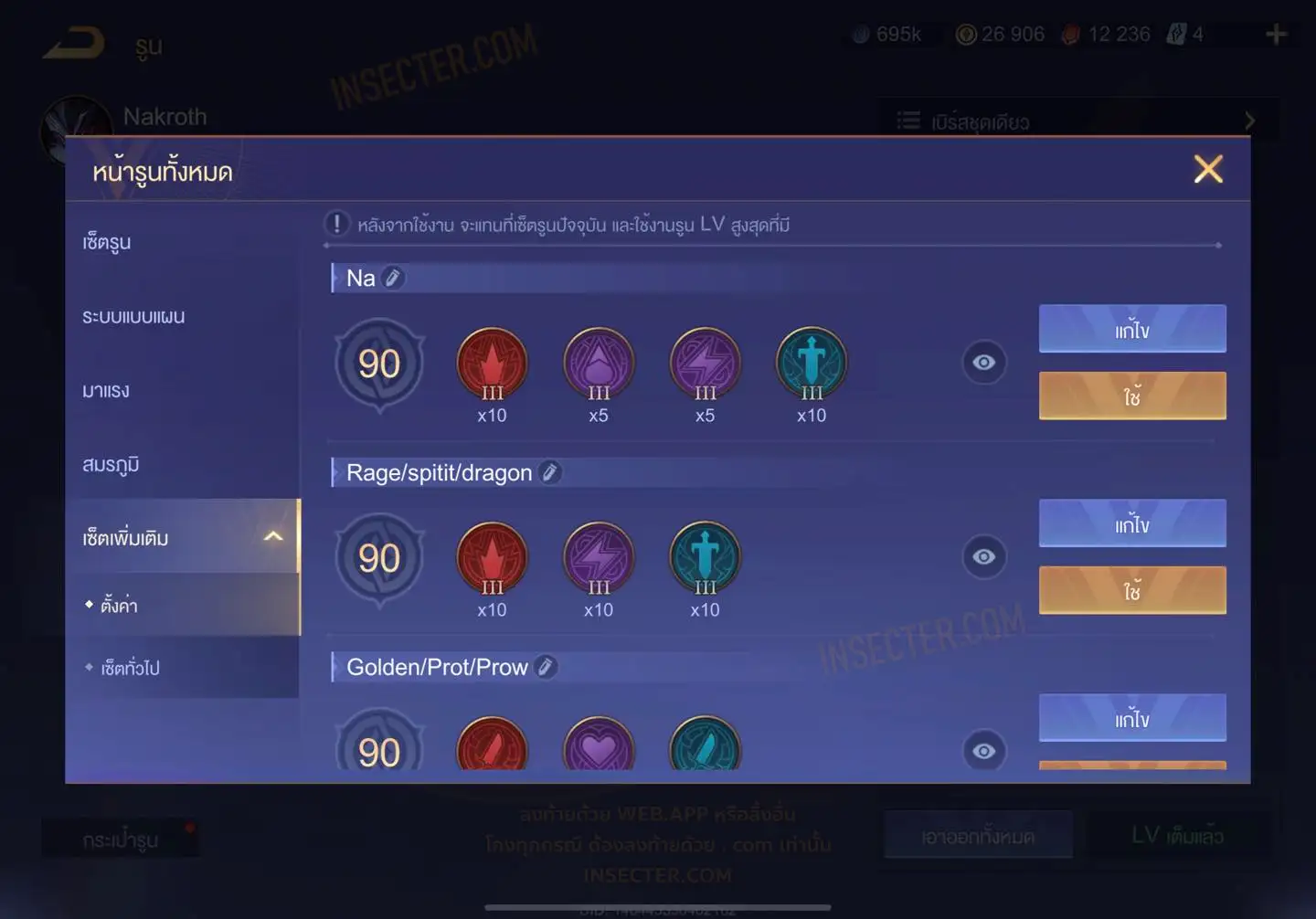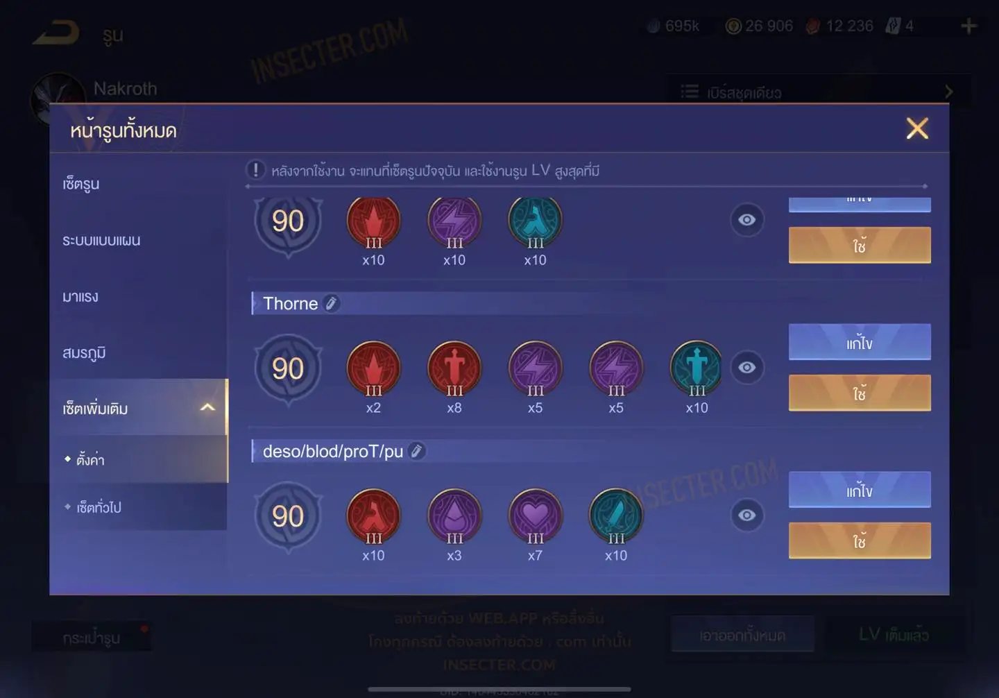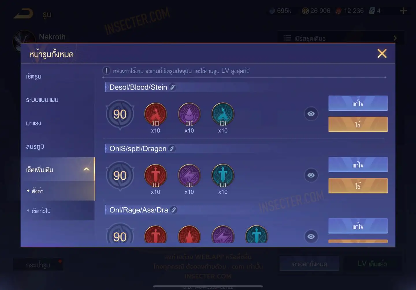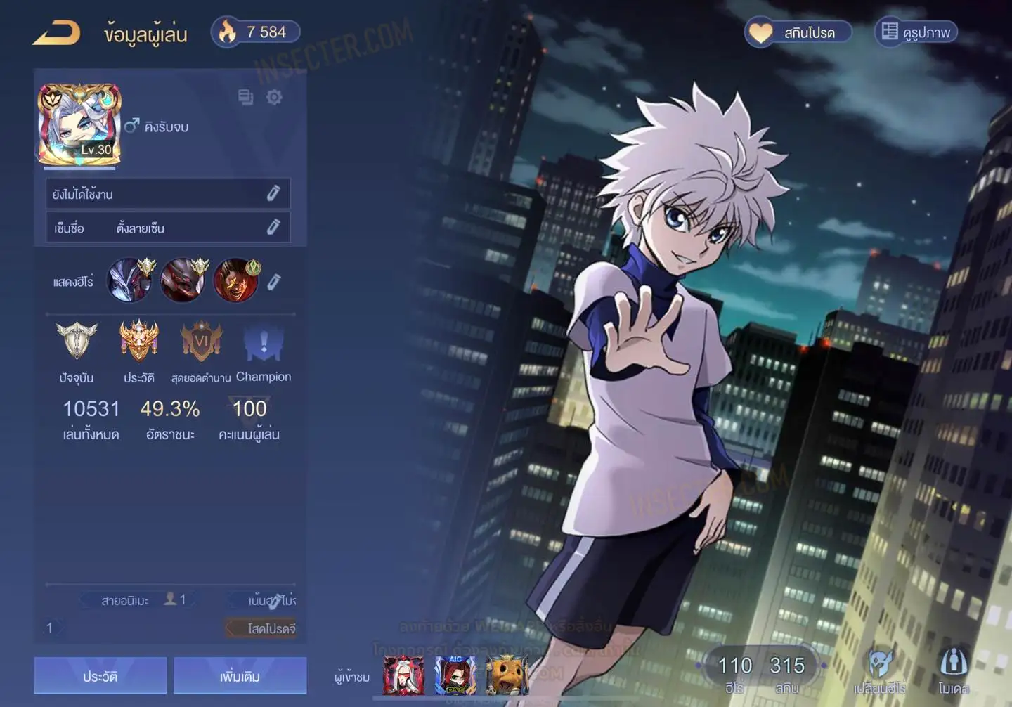 ข้อมูลย่อ : HERO 110 SKIN 315 สกินแรร์นาครอสคิรัว รูน 30 หน้า
