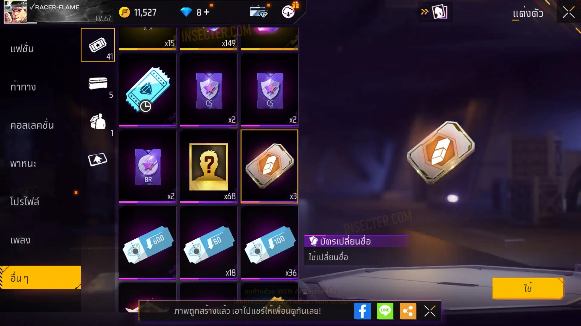 ข้อมูลย่อ : ปืuอัพทำ7/3ได้ สกาชมพู Aug อีโว PARAFAL อีโว ควงอีโวขาว ควงดีแท็ค หมวกF เรดไรท์ ชุดเซ็ทkami 3สี ตาม่วง บาวันฟ้า ปีกนกแดง เสื้อบอลโลก ชุดอสรูเมฆา เสื้อแม๊กม่า หินแปลงร่าง1 บัตรเปลี่ยนชื่อ3 เปิดตัว2ท่า คาตานะไฮบริด ไอซ์วอลเปลี่ยนสี ระเบิดสิงโต