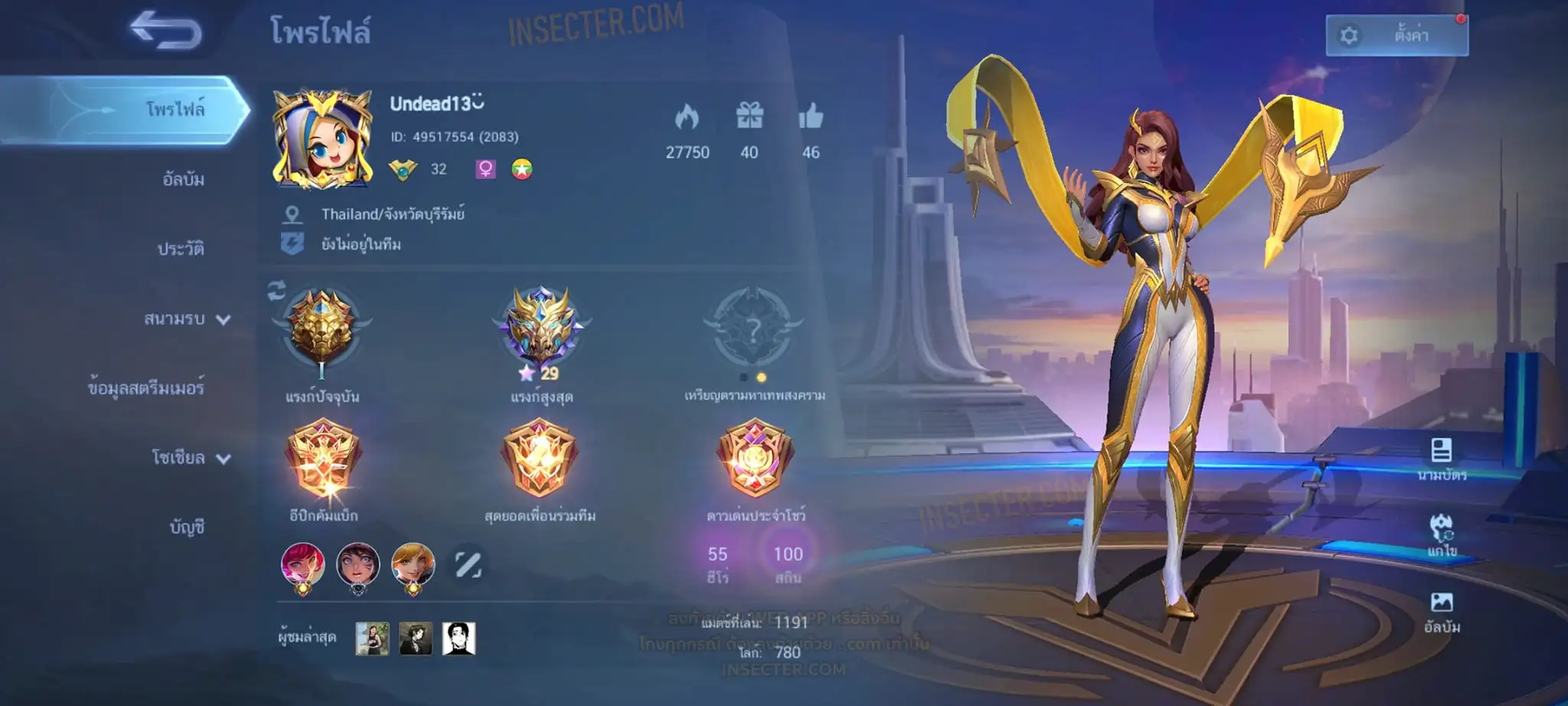 ข้อมูลย่อ : Hero 101 Skin 104 เอ็มเบลตัน/วาร์ปแรร์ร่มไฟ ถาวร !!! 1.บาดัง เพกาซัส 2.อลูการ์ด Lightborn 3.บรูโน่ เนย์มาร์ 4.จูล่ง 515 5.ฮาริธ 515 6.จอห์นสัน Anniversary 7.มิยะ Anniversary 8.ราฟาเอล AS ถ่ายมาบางส่วนยังไม่รวม Skin Special/Elite/Season/Ster คอลเลคชั่นอื่นๆ